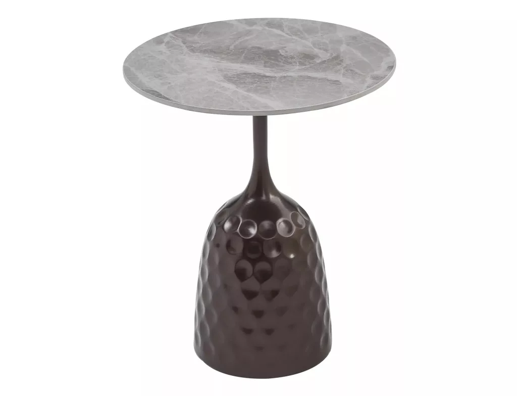 Dohányzóasztal, lap: kerámia, váz: fém, szín: szürke, márványhatású / antik bronz.