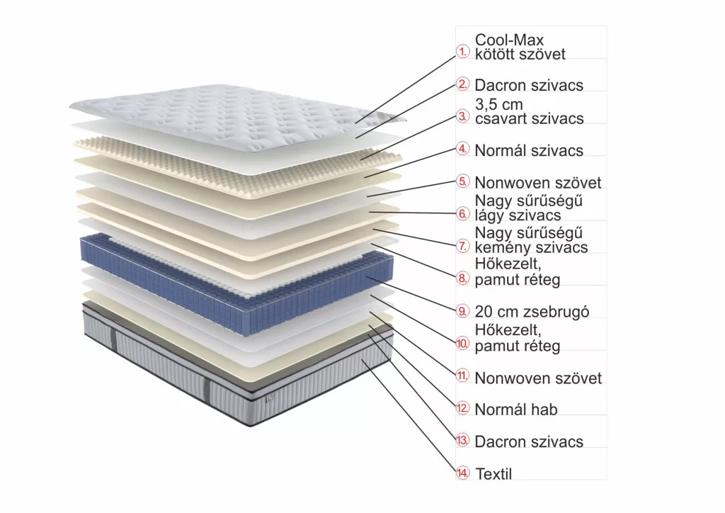 védelem a baktériumok és poratkák ellen: Cool-Max kötött textil fedőréteg