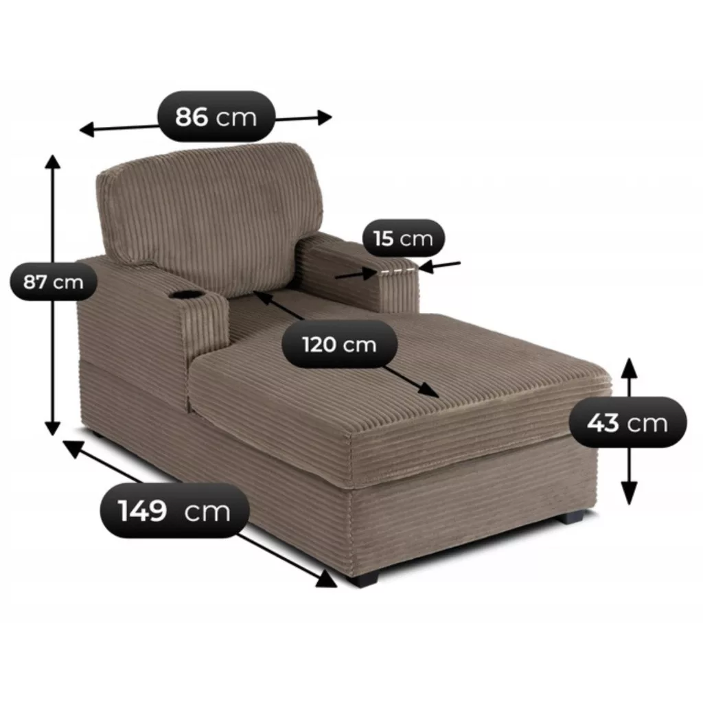 NEO bézs kordbársony pihenőfotel/kanapé. Elege van a csak nézelődésre szánt bútorokból, nem ülésre? A bézs színű Neo fotel több, mint egy csinos kiegészítő – mindennapi kényelmet és funkcionalitást kínál. Kicsi, de maximális kényelmet kínál – tökéletes, ha igazán pihenni szeretne. Miért válassza? Mindennapi praktikum: A kartámaszban rejtett tároló okos módja annak, hogy minden szükséges holmiját – távirányítót, könyvet, töltőt vagy egy kis harapnivalót – kézközelben tartsa. Mellette egy praktikus pohár- vagy palacktartót is talál – biztonságosan és kényelmesen. Kényelem, amit érezhet: A kényelmes, ruganyos ülés és a puha, mégis stabil háttámla pontosan azt a ellazulást biztosítja, amire szüksége van – akár könyvet olvas, akár filmet néz, vagy csak egy pillanatra vágyik magára.