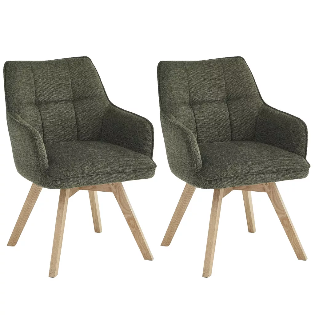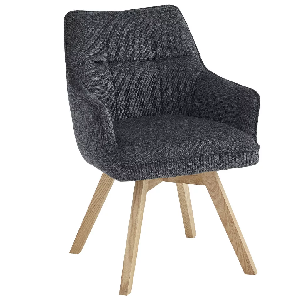 Kényelmes étkezőszék karfákkal és forgófunkcióval. A teljes szék puha szövettel kárpitozott, antracit vagy zöld színben kapható, és a háttámla mentén díszvarrással van ellátva. Az ülőfelület tölgyfából készült, az eredeti fa színben. Az ülőfelület forgótányérja lehetővé teszi, hogy a szék ülőfelülete 180°-ban elforduljon. Akár az asztalon lévő valami után nyúl, akár beszélget, akár az ülőpozícióját állítja be, ez a hasznos funkció új szintre emeli a funkcionalitást a stílus feláldozása nélkül. A szék maximális teherbírása 120 kg.