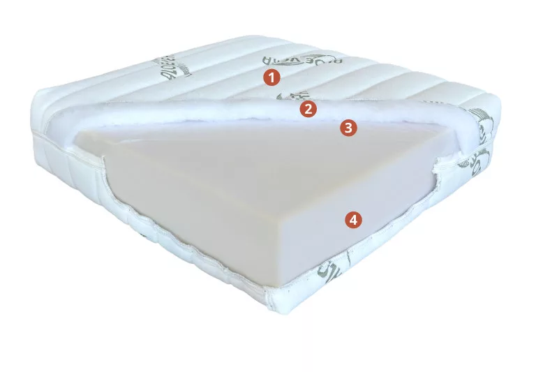 A félkemény komfortfokozatú matrac 28 kg/m3 sűrűségű hideghab (poliuretán) anyagból készült. A külső levehető, 40°C-on mosható Aloe Vera huzat miatt a természet, a belső rugalmas mag révén pedig a technológia találkozása, mely képes biztosítani az egészséges és higiénikus kényelemet alvás során.