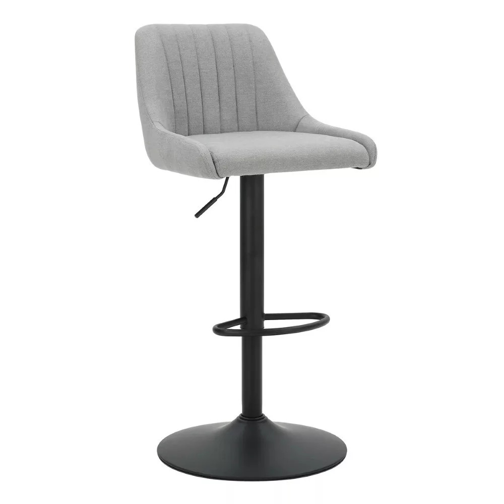 Kárpitozott bárszék, szürke színben kapható. Az ülőfelület oldalai megemeltek a kényelmesebb ülés érdekében, a háttámla pedig díszes varrással steppelt, ami feldobja a szék megjelenését. A szék forgatható és magasságban állítható, a tartóoszlopban gázmechanizmus található. Az ülőfelület magassága 62 és 82 cm között állítható. Az alapzat félhold alakú lábtartóval is fel van szerelve.A tartóoszlop fémcsőből készült és porfestett a fém jobb védelme érdekében. A nagyméretű padlólap biztosítja a szék jó stabilitását. A bárszék maximális teherbírása 120 kg.