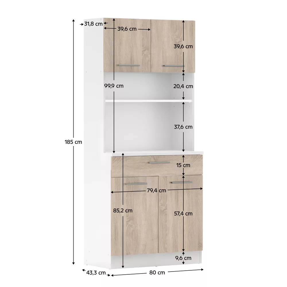 Méretek (SzxMéxMa): 80x43,3x185 cm