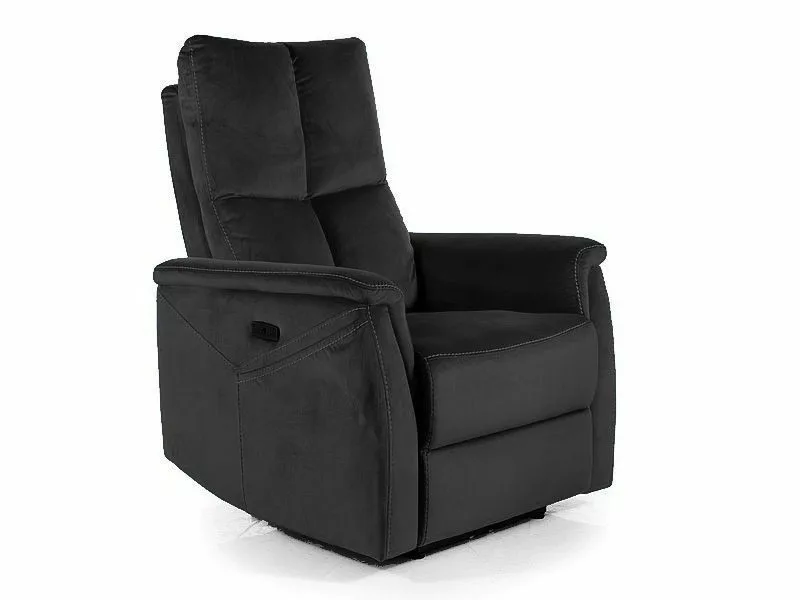 Dönthető fotel, kárpitozás: Bluvel bársony szövet, váz: fém, szín: 19 fekete / fekete. Elektromos dőlésszög, funkciók: masszázs, fűtés, USB port.
