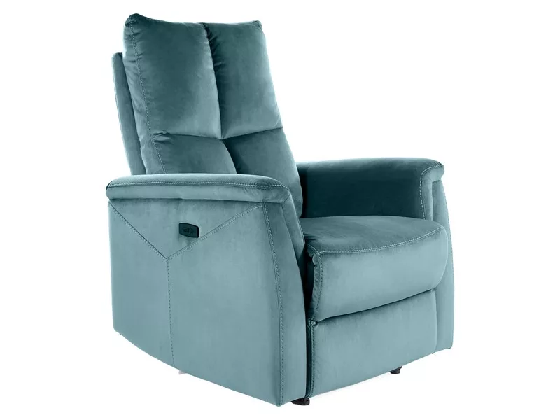 Elektromos dönthető fotel, bársony szövet: Bluvel, színek: zöld 78. USB port a vezérlőpanelbe építve.