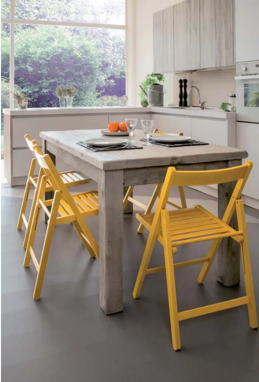 Egy gyönyörű és praktikus összecsukható szék, amely tökéletesen illik otthonába vagy a teraszra. De alkalmas különféle termek berendezésére is rendezvényekhez. Tömör fából készült, és nagyon könnyen összecsukható. Különböző színek közül választhat. Az ülőmagasság 46 cm. Max. teherbírás 95 kg.