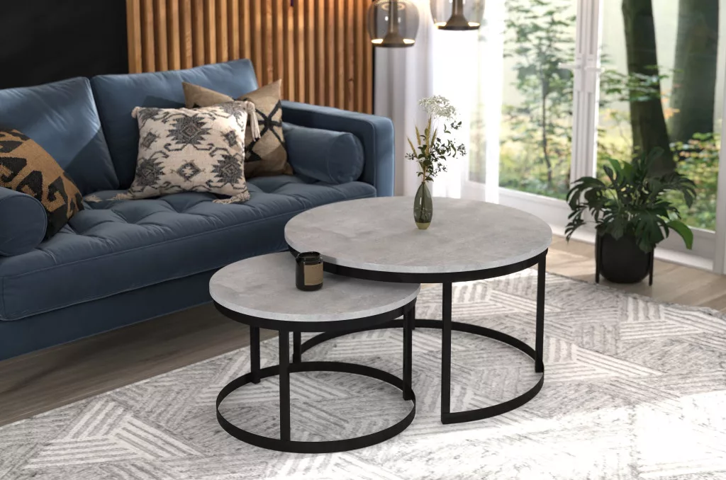 OKIN 2 az 1-ben kávéasztal, Fekete, Beton