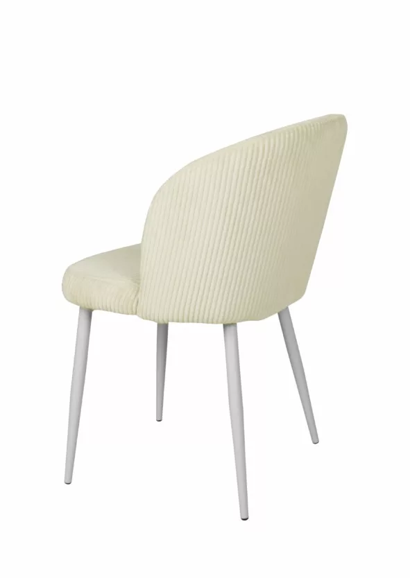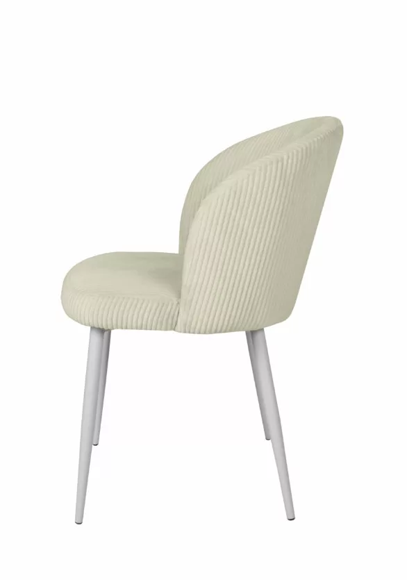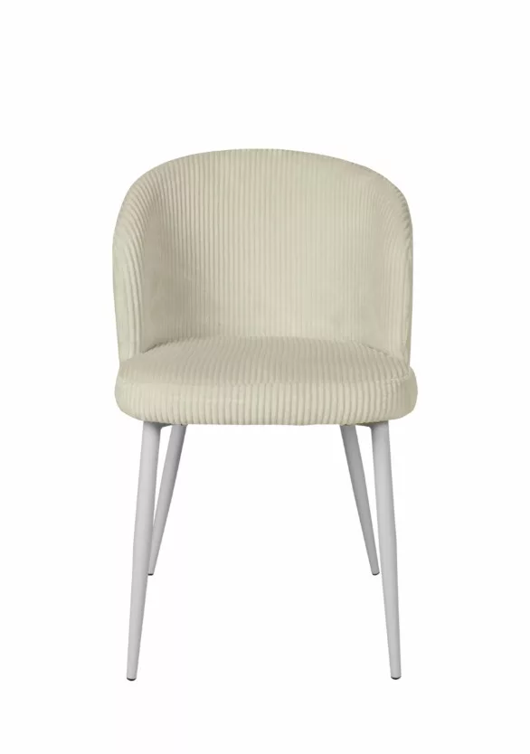 Az Olaf székünk 3 kellemes színben kapható, kordbársony szövettel. A beige, világosbarna és világosszürke szövetet fehér festett fém lábak teszik még elegánsabbá.