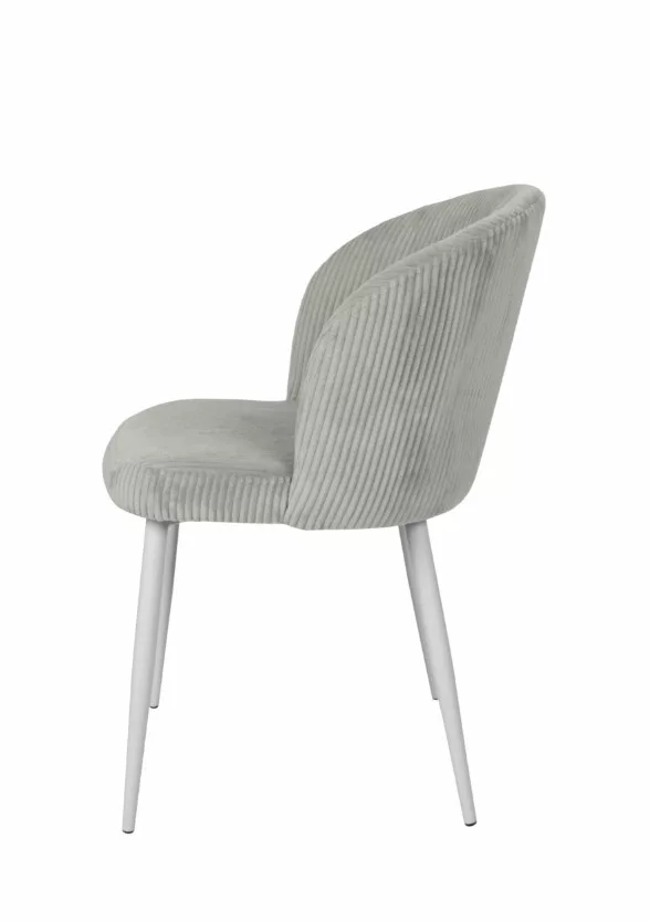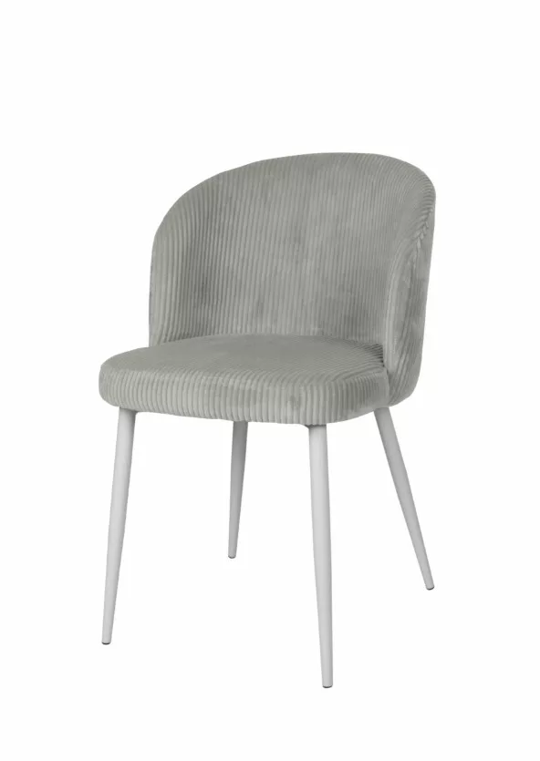 Az Olaf székünk 3 kellemes színben kapható, kordbársony szövettel. A beige, világosbarna és világosszürke szövetet fehér festett fém lábak teszik még elegánsabbá.