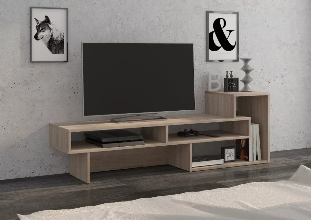 OREGON világos sonoma tv szekrény polcokkal, mely a bútor praktikus kialakításának köszönhetően bármelyik nappaliban/hálószobában megállja a helyét.