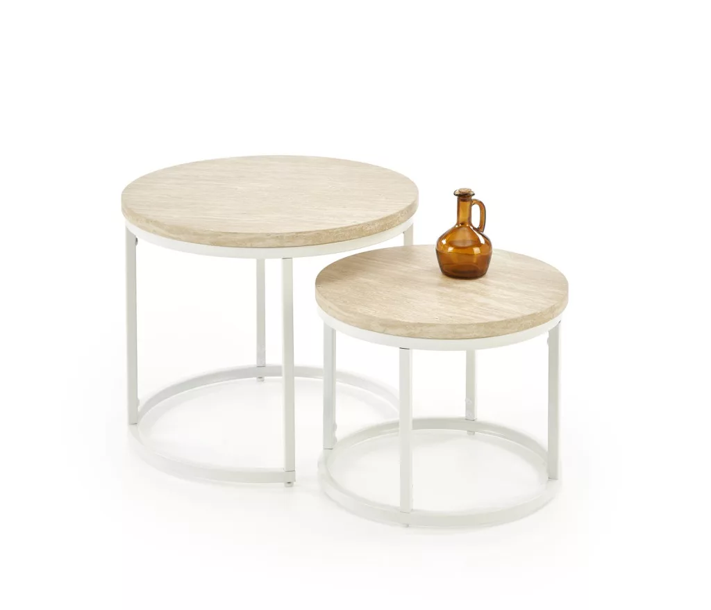 OREO két darabos dohányzóasztal szett, szín: travertin/fehér