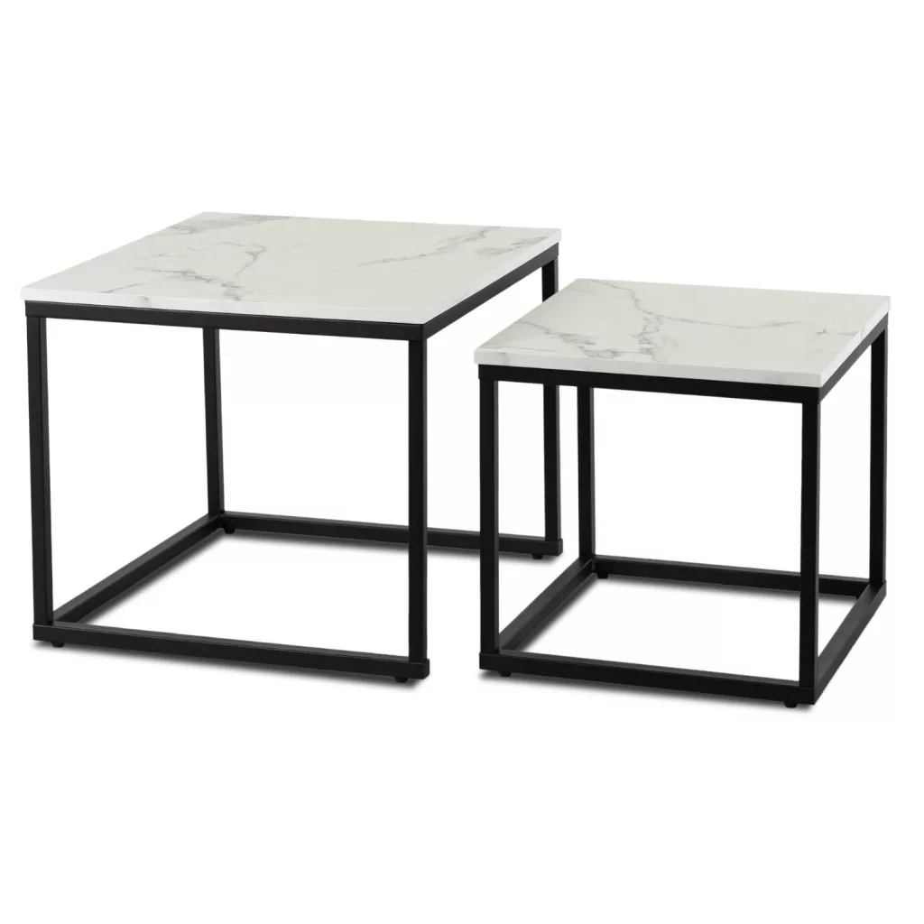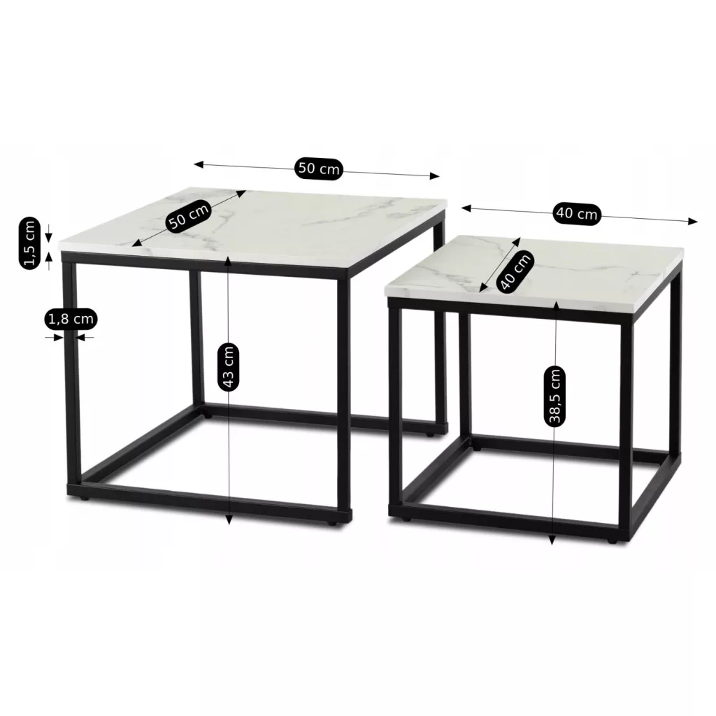 ORI Fehér Márvány Dohányzóasztal Garnitúra. Nem szereti a zsúfolt tereket, de értékeli az elegáns bútorokat? Az Ori dohányzóasztal garnitúra egy okos megoldás, amely alkalmazkodik az Ön igényeihez. Két asztal, amelyeket egymás mellé, külön-külön is elhelyezhet, vagy a kisebbet a nagyobb alá csúsztathatja – ahogy tetszik. Stílusos és masszív – a minőség, amiben megbízhat. Márványhatású asztallap: A laminált MDF lap finom mintázata stílusos és könnyen tisztítható. Acélszerkezet: A matt fekete keret karaktert kölcsönöz és stabilitást biztosít.