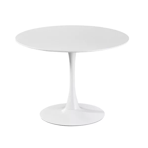 A kerek étkezőasztal alapja kör alakú. Az alap fémből készült, fehér matt színű porszórt. Az alaplemez átmérője 60 cm. A 18 mm vastag asztallap fehér matt színű MDF-ből készül. Max. súlykapacitás: 40 kg.