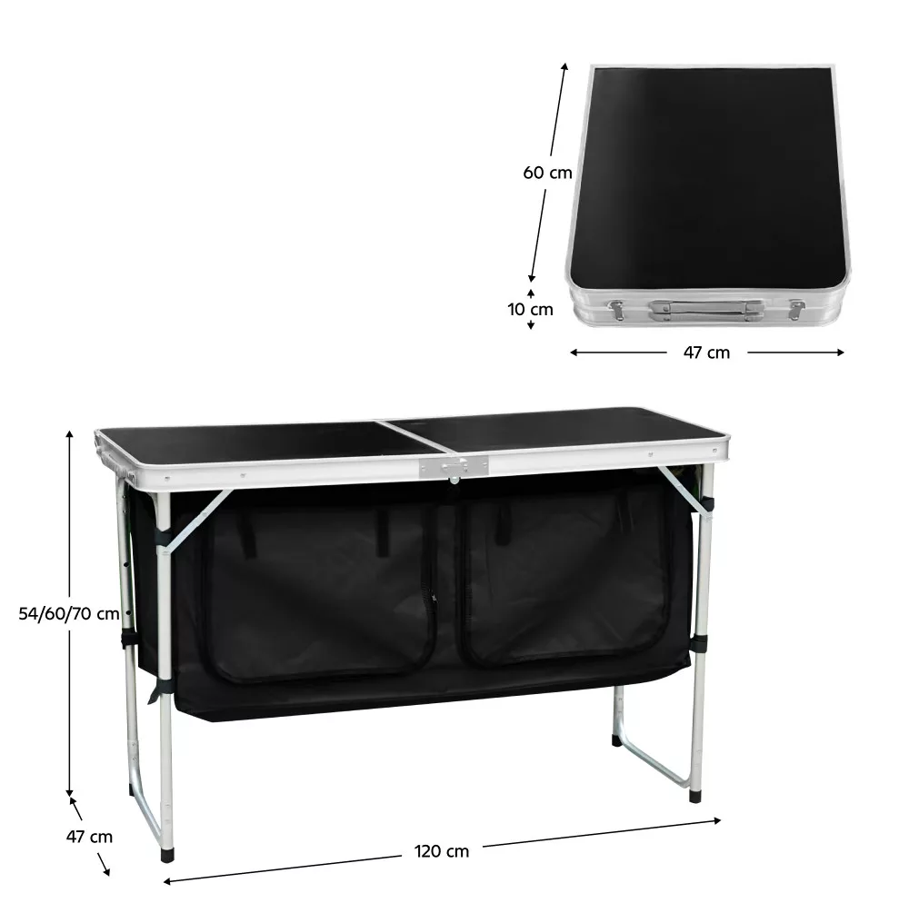Összecsukható kempingasztal rendszerezővel, 120 cm, alumínium/MDF, KEPI TYP 3