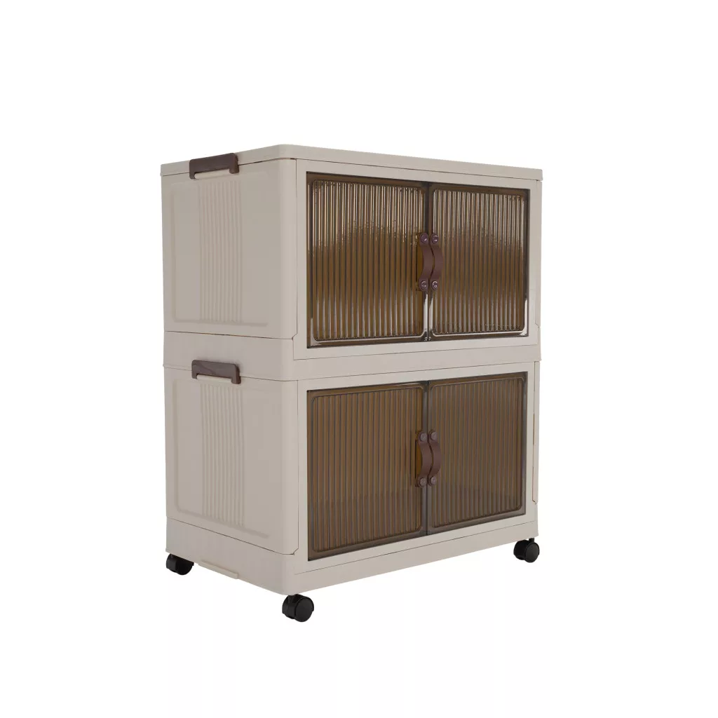 Összecsukható szekrény, fehér/barna, műanyag, POSA TYP 1