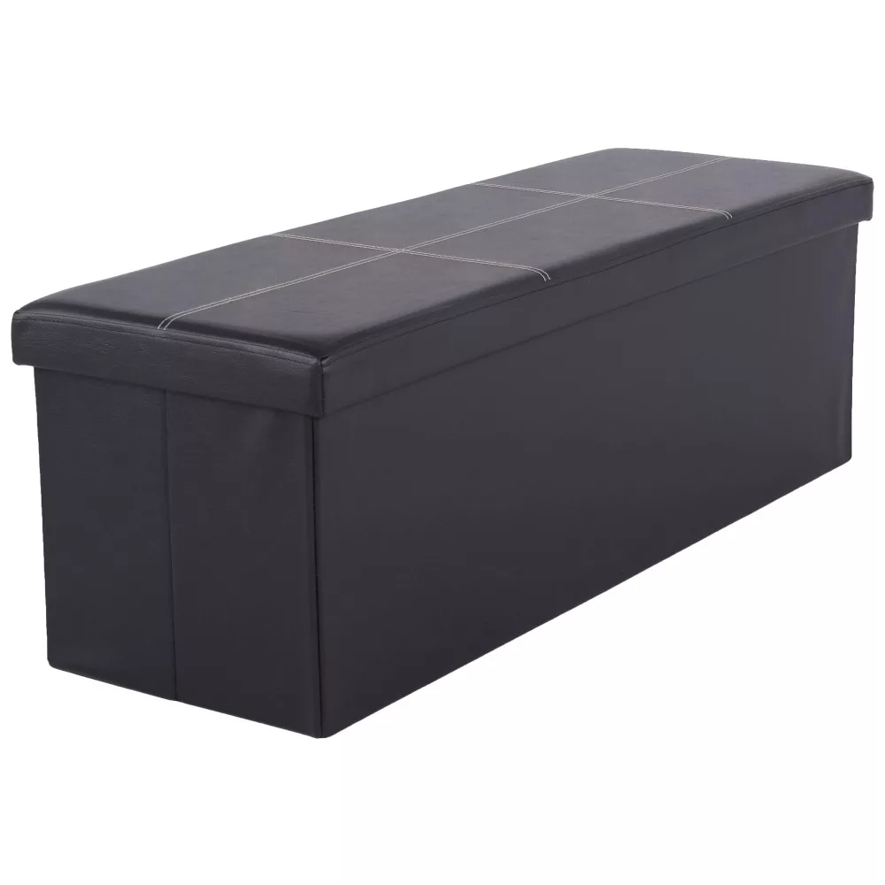 Összehajtható puff, fekete textilbőr, ZAMIRA