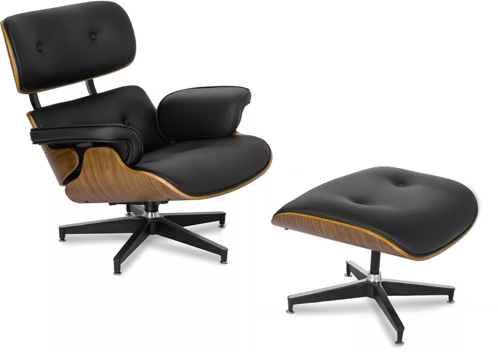 PALERMO Lounge Fotel Lábtartóval, Fekete Ökobőr