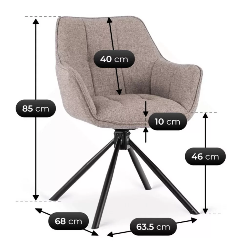 Cappuccino színű Peony 2 kárpitozott forgószék teljes mozgásszabadságot és kényelmet kínál minden nap. A forgóülés lehetővé teszi a könnyű asztalhoz állítást, az ergonomikus háttámla pedig megfelelő háttámaszt biztosít. Dobja fel terét egy elegáns bútordarabbal, amely stílusos és átgondolt dizájnnal büszkélkedhet. Miért fogja imádni a Peony széket? A Cappuccino szövetkárpit divatos, kellemes tapintású, tartós és könnyen tisztítható. Tökéletes családi terekbe és háziállatokkal rendelkező otthonokba. A vödör forma ergonomikus háttámlával biztosítja a megfelelő hátpozíciót és a magas kényelmet még hosszú ülés közben is. A dekoratív varrás és a finom steppelések modern, elegáns megjelenést kölcsönöznek a széknek. A puha ülés kényelmet biztosít étkezés, munka vagy pihenés közben. A 180°-os forgatási funkció lehetővé teszi az ülés szabad forgatását mindkét irányban. A "memória alaphelyzet" rendszer az elforgatás után automatikusan visszaállítja az ülést a kiinduló helyzetébe. A fekete fém lábazat garantálja a szerkezeti stabilitást. A Peony modell tökéletes étkezőkbe, nappalikba és akár otthoni irodákba is. Univerzális kialakításának köszönhetően könnyedén kiegészíti a különféle stílusokban berendezett enteriőröket. A Peony szék ötvözi a kényelmet és az eleganciát.