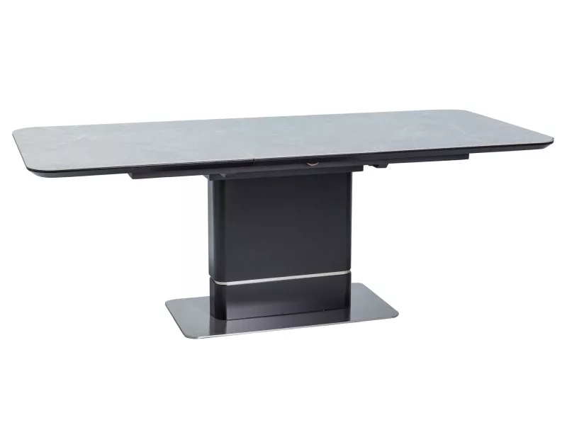 Meghosszabbítható asztal, asztallap: MDF + kerámia, márványhatású, váz: MDF + szálcsiszolt acél, szín: szürke márvány / matt fekete.