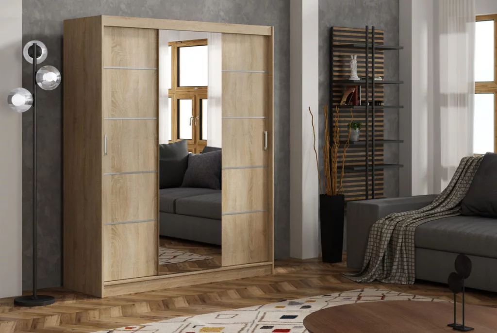 A Palma LUX tolóajtós gardróbszekrény modern, elegáns megjelenésének köszönhetően könnyen illeszkedik bármilyen nappali vagy hálószobai berendezéshez.