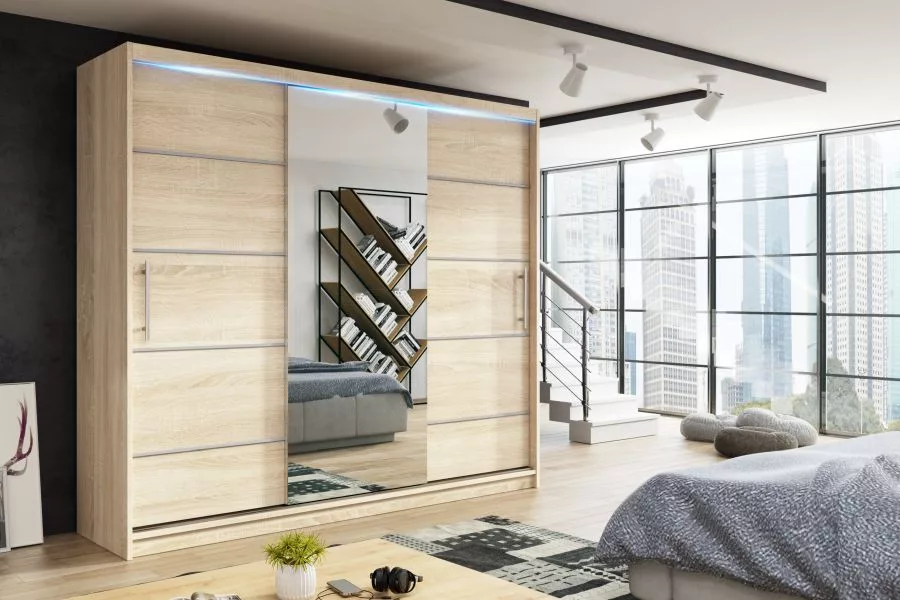 Palma LUX 180 cm tolóajtós gardróbszekrény, sonoma színben