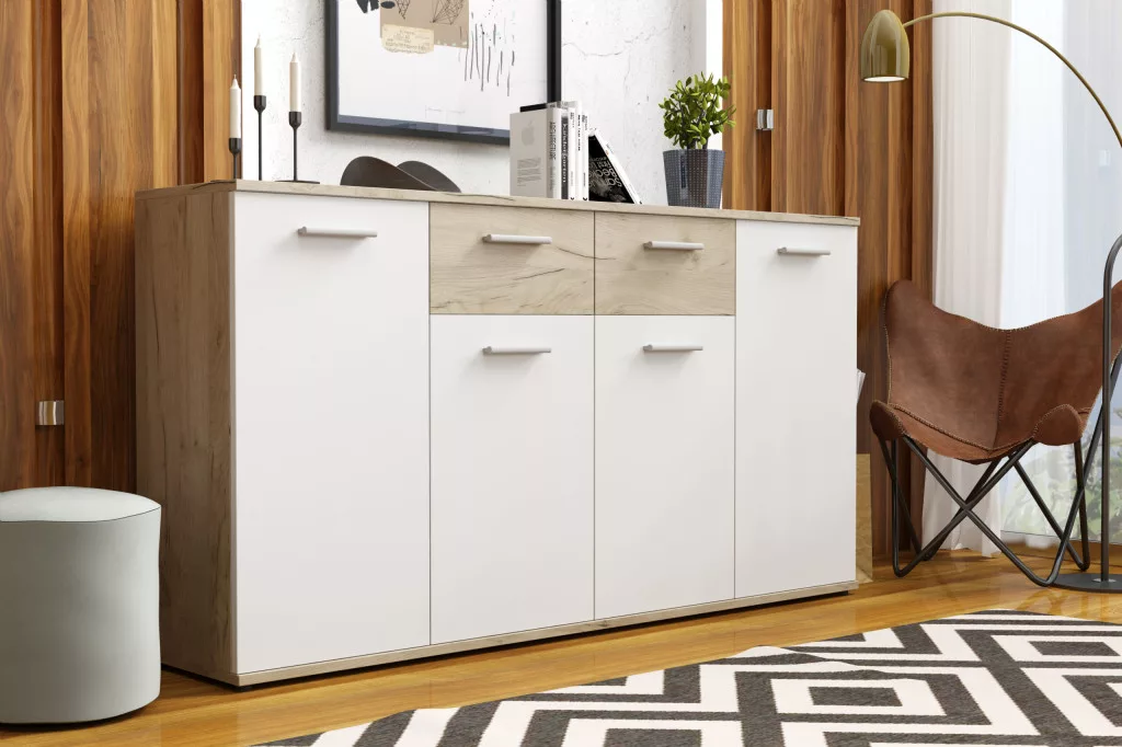 Palma LUX L komód 160 cm, 4 ajtós 2 fiókos, sonoma/fehér színben