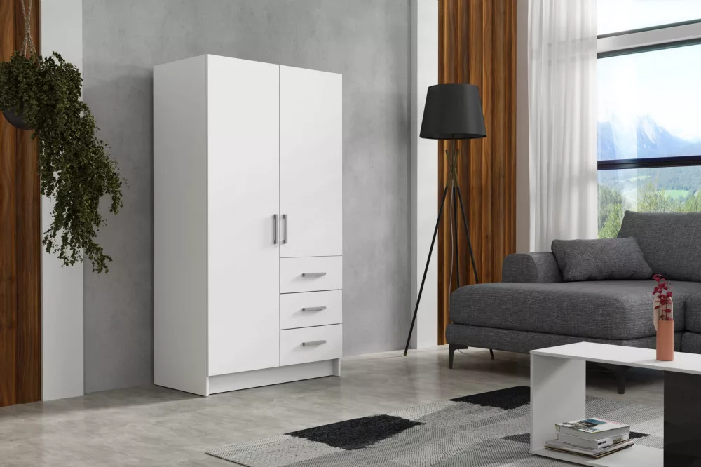 Pino III. akasztós, polcos, fiókos gardróbszekrény 96 cm fehér színben