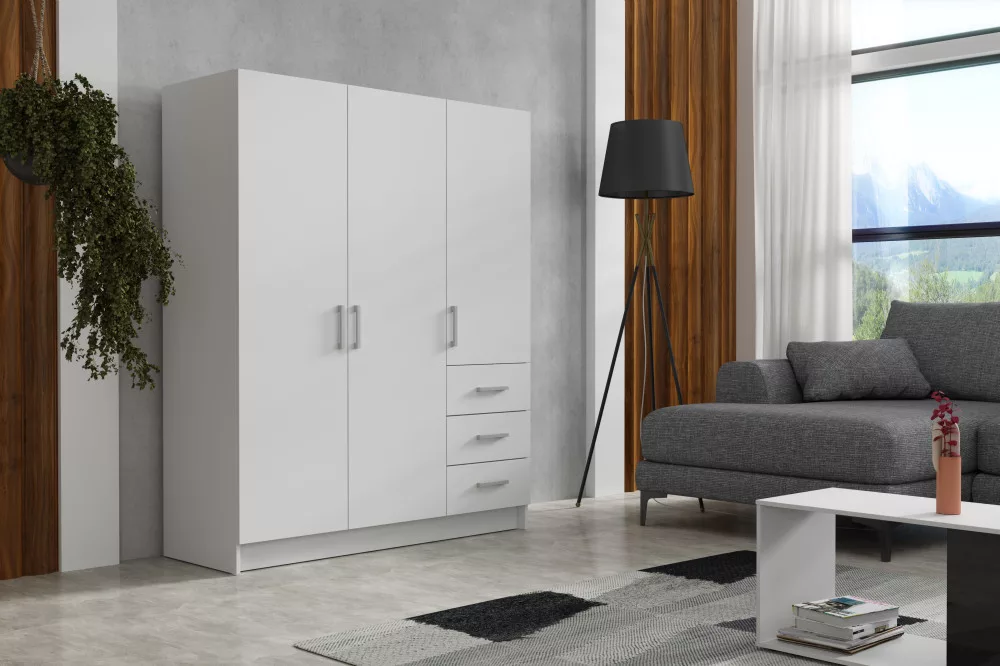 Pino IV. akasztós, polcos, fiókos gardróbszekrény 144 cm fehér színben