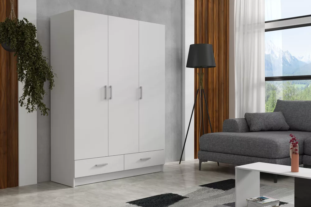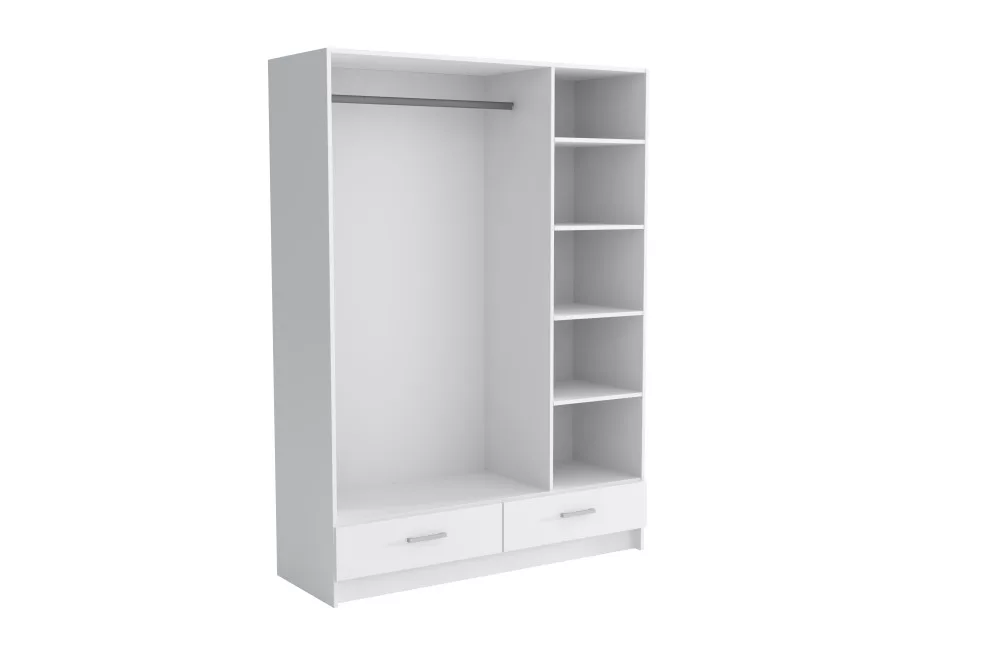 Pino V. akasztós, polcos, fiókos gardróbszekrény 144 cm fehér színben