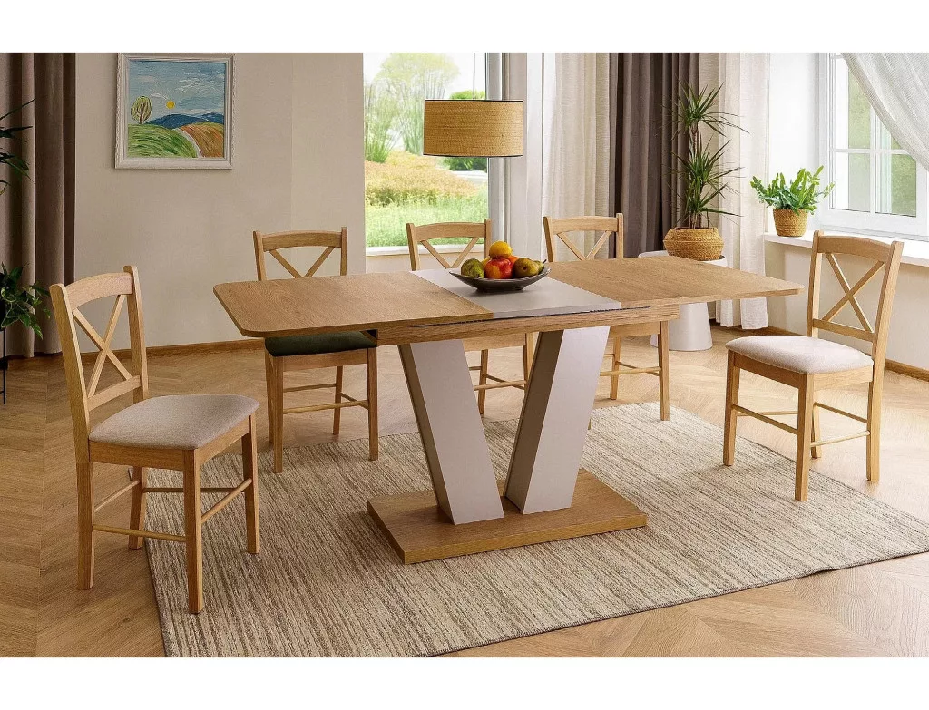 Meghosszabbítható asztal, asztallap: laminált forgácslap, váz: laminált forgácslap, szín: cremona torro tölgy + kasmír / cremona torro tölgy + kasmír.
