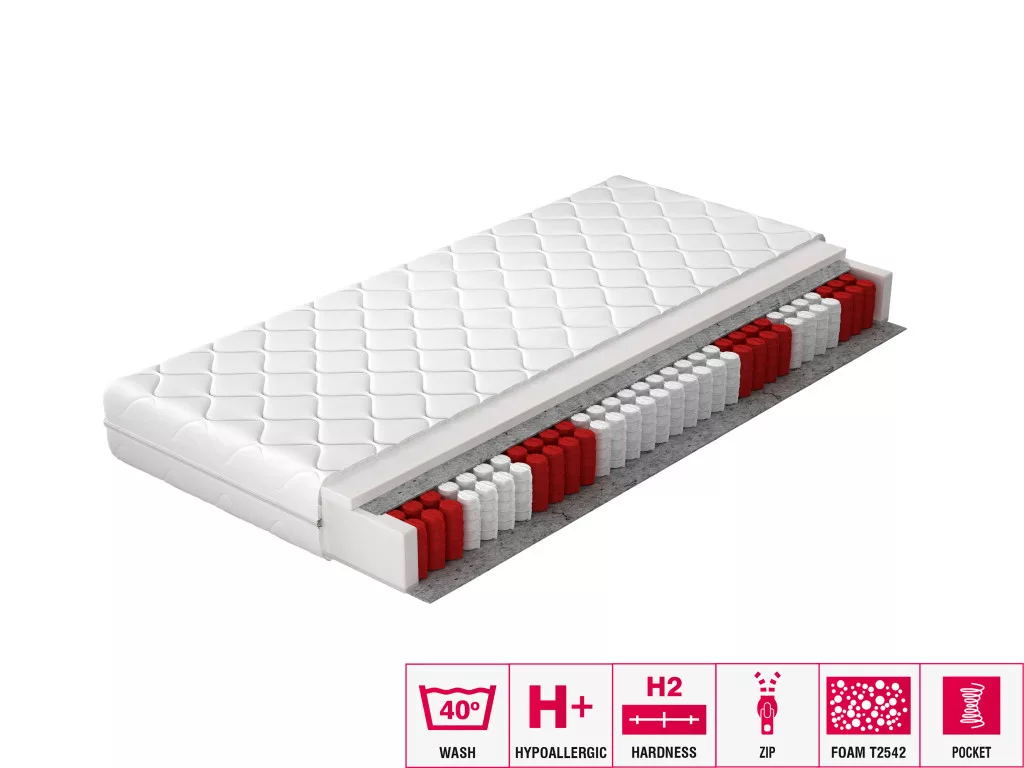 Pedro Táskarugós matrac 90x200 hipoallergén huzat, fehér