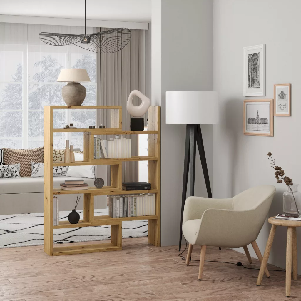 A KARDAL könyvespolc egy egyszerű, mégis rendkívül funkcionális bútordarab. A könyvespolc több tágas polccal rendelkezik, így kisebb tárgyak tárolására is alkalmas. A bútort össze- és széthajthatod attól függően, hogy mennyi helyre van szükséged. A könyvespolc szélessége 72,5 és 125 cm között mozog!