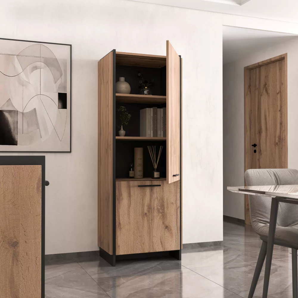 Polcos szekrény, wotan tölgy/fekete, AMONI 2D
