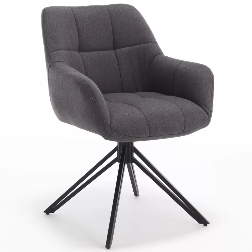 Kényelmes étkezőszék karfákkal, puha bézs vagy szürke szövettel kárpitozva. Az ülőfelület és a háttámla díszes varrással van ellátva, ami fokozza a szék megjelenését. Az alapzatban található forgólap lehetővé teszi az ülőfelület 180°-os elforgatását.A szék négy fémlábon áll, amelyek fekete porfestett bevonattal rendelkeznek a környezeti hatásokkal szembeni jobb védelem érdekében. A szék maximális teherbírása 120 kg.