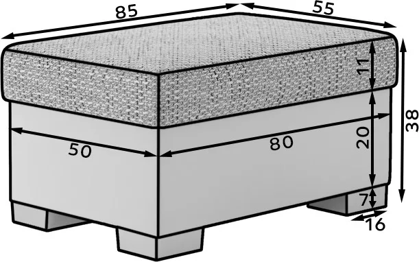 Az R4 egy puff, amelyet többek között az egyszerű, bevált dizájn, a téglalap alakú forma, a tartály, az elegáns kivitelezés és a megfelelően kiválasztott kiegészítők, például ezüst formájú, tágas lábak jellemeznek. A stílusos megjelenés mellett minden belső térbe illő - érdemes megjegyezni a bútorok különleges minőségét is. A 85x55 cm-es méretek lehetővé teszik, hogy a puff szabadon elférjen bármilyen méretű helyiségben. Az ülés T25 habbal való feltöltése maximális puhaságot, rugalmasságot és érezhető kényelmet garantál. Javasoljuk, hogy ismerkedjen meg termékünkkel. Biztosan jó, megbízható választás lesz.