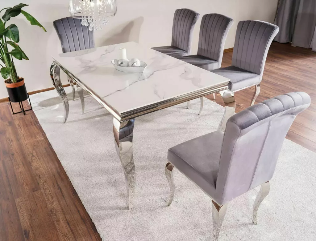 Fedezze fel a Table Prince Kerámia étkezőasztalt, amely egy modern otthonok tökéletes kiegészítője! A gyönyörű CALACATTA kerámia lap és a fényes rozsdamentes acél váz eleganciát és stílust kölcsönöz a nappalinak vagy a konyhának. Ideális választás, ha egyedi és ízléses bútort keres, amely kiemeli otthona szépségét.