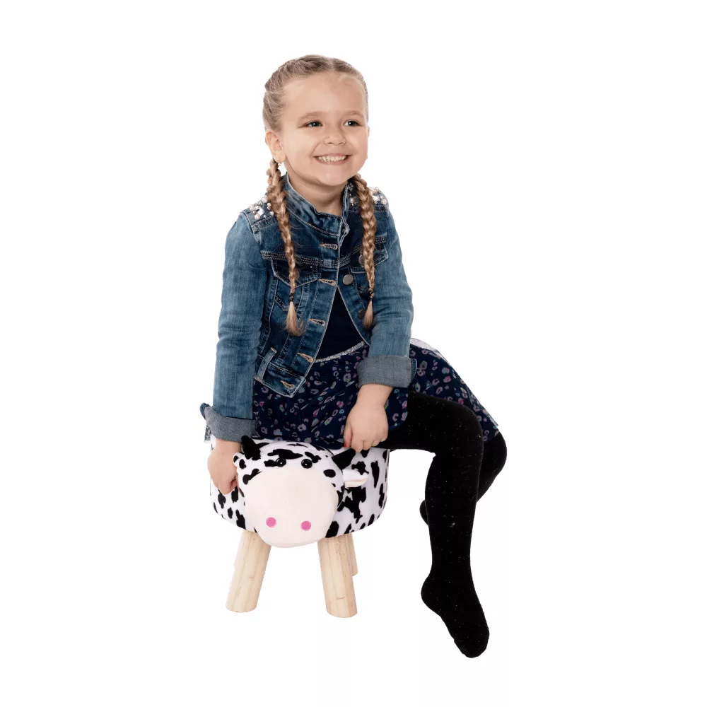 Puff kistehén alakban, Velvet anyag fehér/fekete/natúr, MOLLY