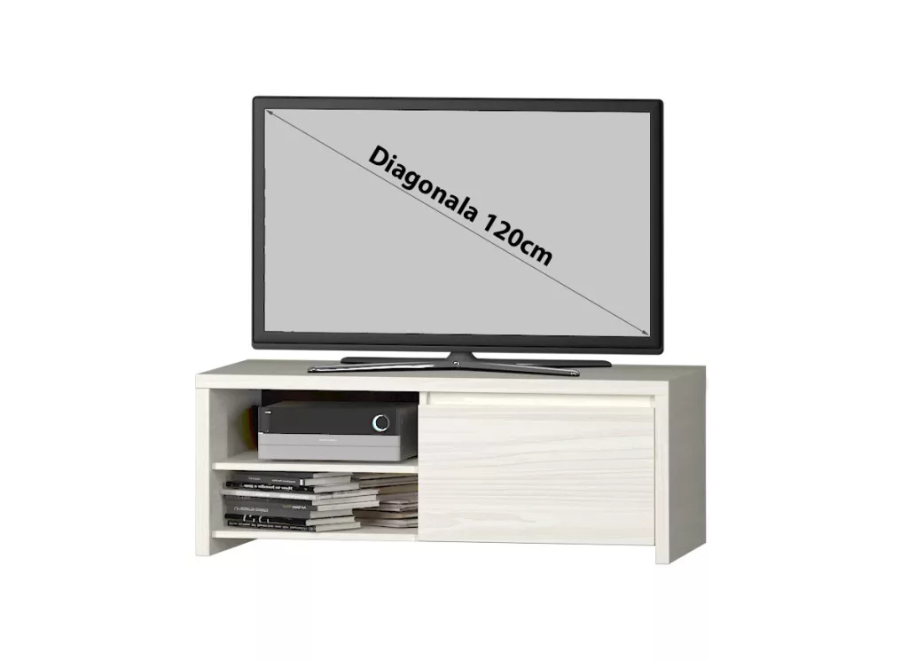 Kis TV komód - Nappali QubixKis TV komód - Nappali Qubix - Modern dizájnnal készült, alapanyaga melamin bevonatú forgácslap, vastagsága 16 mm, illetve 28 mm. A fehér Douglas felület extra eleganciát kölcsönöz az egész helyiségnek. Tartalmaz egy tárolóhelyet, amely egy ajtóval ellátott fedett területből és két polcból áll, amelyek díszítőelemek és audiorendszerek tárolására szolgálnak. A TV elhelyezéséhez ajánlott átlós méret maximum 120 cm. A szekrény rekeszeinek felosztását, az egyes alkatrészek méreteivel együtt, az alábbi összeszerelési vázlaton tekintheti meg. Az él vastagsága 0,6 mm, hogy kellemes megjelenést biztosítson. Könnyen összeszerelhető, a termékhez tartozik egy összeszerelési ábra és a szükséges hardver a csomagban.Külső méretek: