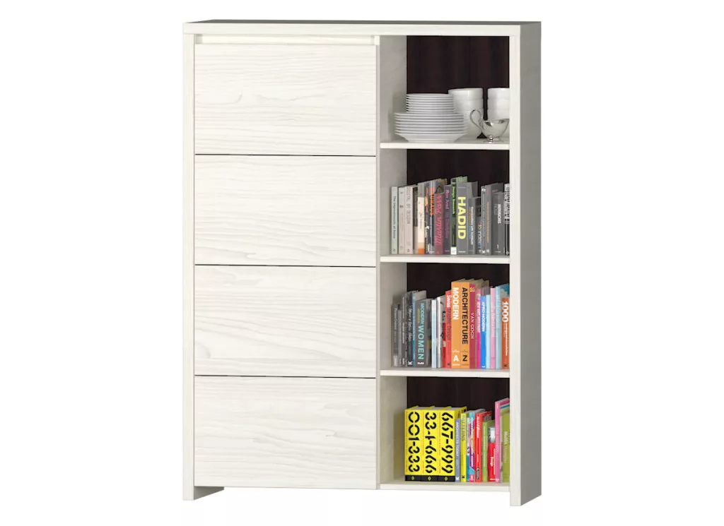 A magas fiókos szekrény méretei:Szélesség: 101,9 cmMélység: 40,6 cmMagasság: 140,8 cm További információk: Magas TV-s fiókos szekrény - Nappali Qubix