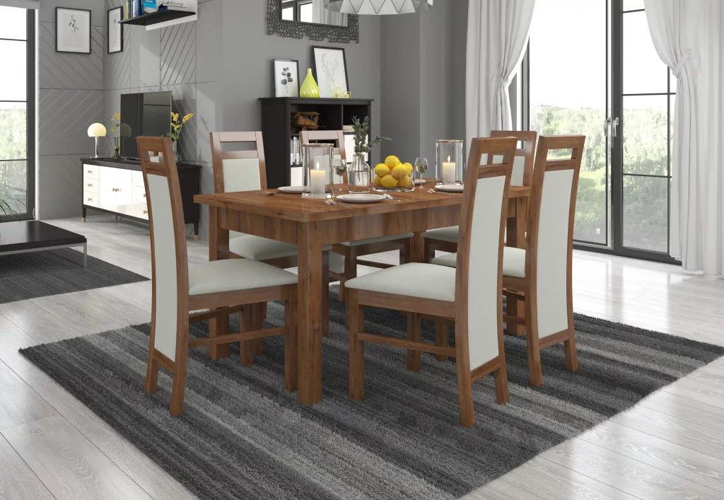 A Rhodes 14 készlet ideális megoldás egy klasszikus étkező számára. A készlet egy masszív asztalt és hat kényelmes széket tartalmaz. Az asztal egyszerű formája kényelmesen elég helyet biztosít hat ember számára. A bútor nagyon elegáns és kényelmes. Válassza ki álmai színét és szövetkollekcióját, hogy létrehozza álmai készletét.