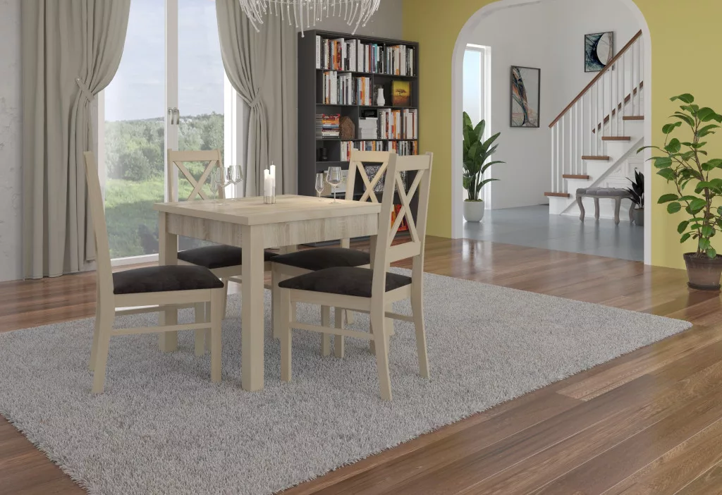 A Rhodes 38 szett ideális megoldás egy klasszikus, kisebb étkezőhöz. A szett tartalmaz egy masszív asztalt és négy kényelmes széket. Az egyszerű formájú, négyzet alakú asztal kényelmesen befogad négy embert. A bútorok nagyon elegánsak és kényelmesek. Válassza ki álmai szettjének színét és textil kollekcióját.