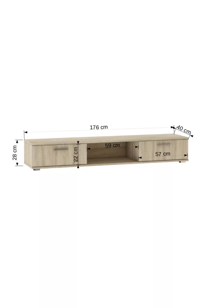RTV szekrényt, az ARIDEA-t egyszerűség és modern design jellemzi. Az üregben és két tágas szekrényben elhelyezheted a berendezéseket vagy könyveket. Az ARIDEA klasszikus és modern belsőkhöz egyaránt passzol.