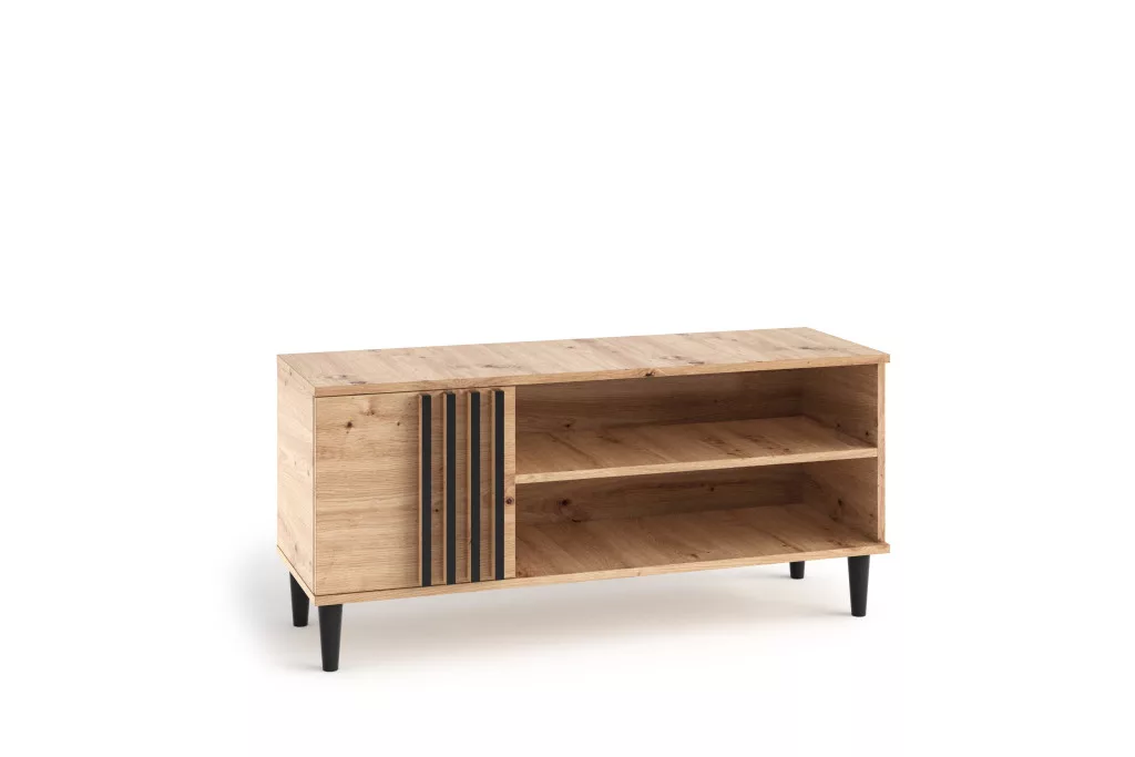 A LIVIA kollekció TV-szekrénye egy olyan bútordarab, amelyet a nappaliba terveztek. A természetes fa hatását hangsúlyozzák a fekete színű díszítőelemek és betétek. Modern stílusban megtervezve biztosan felkelti a figyelmet. Ideális választás lesz egy minimalistikus belső térbe. Kérjük, ismerkedjen meg a LIVIA kollekció többi termékével is.