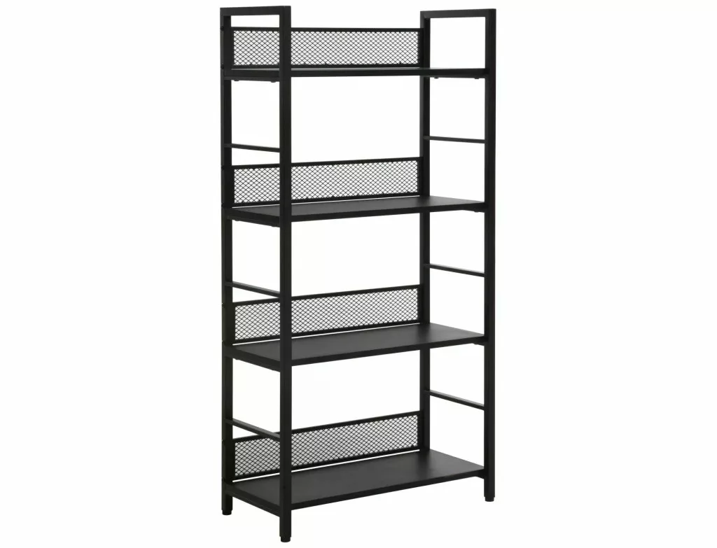 Könyvespolc, polcok: laminált bútorlap, keret: fém, szín: fekete / matt fekete.
