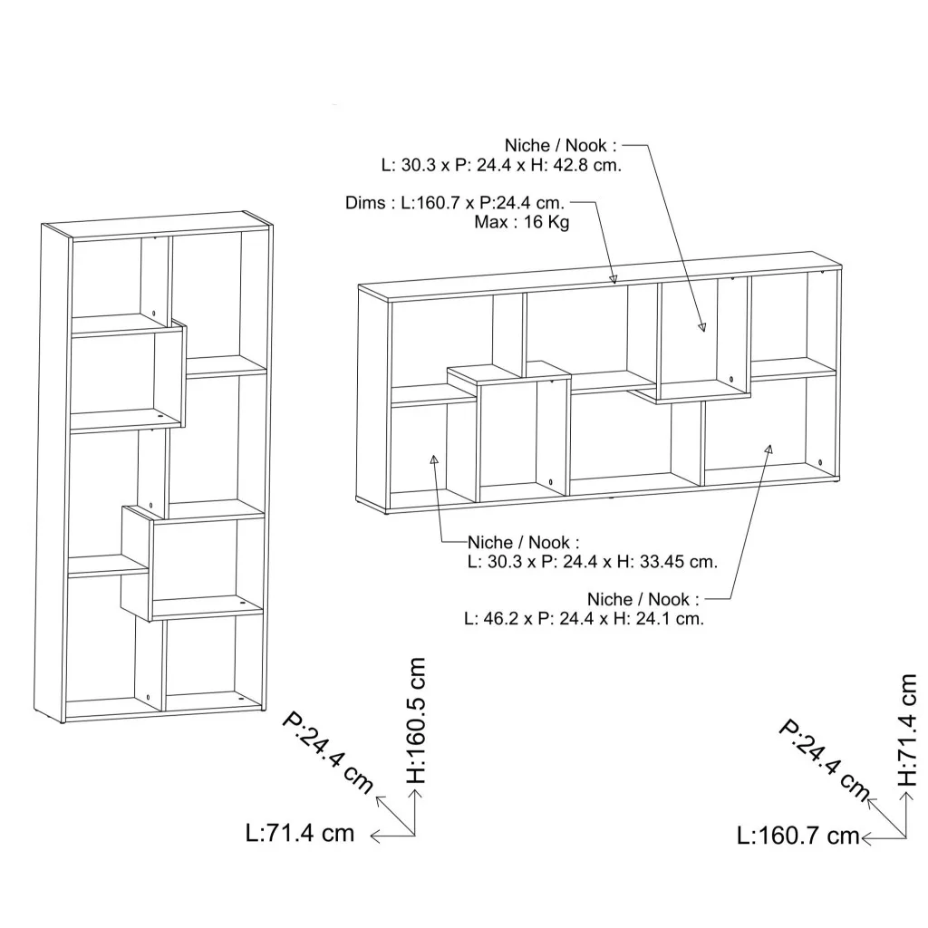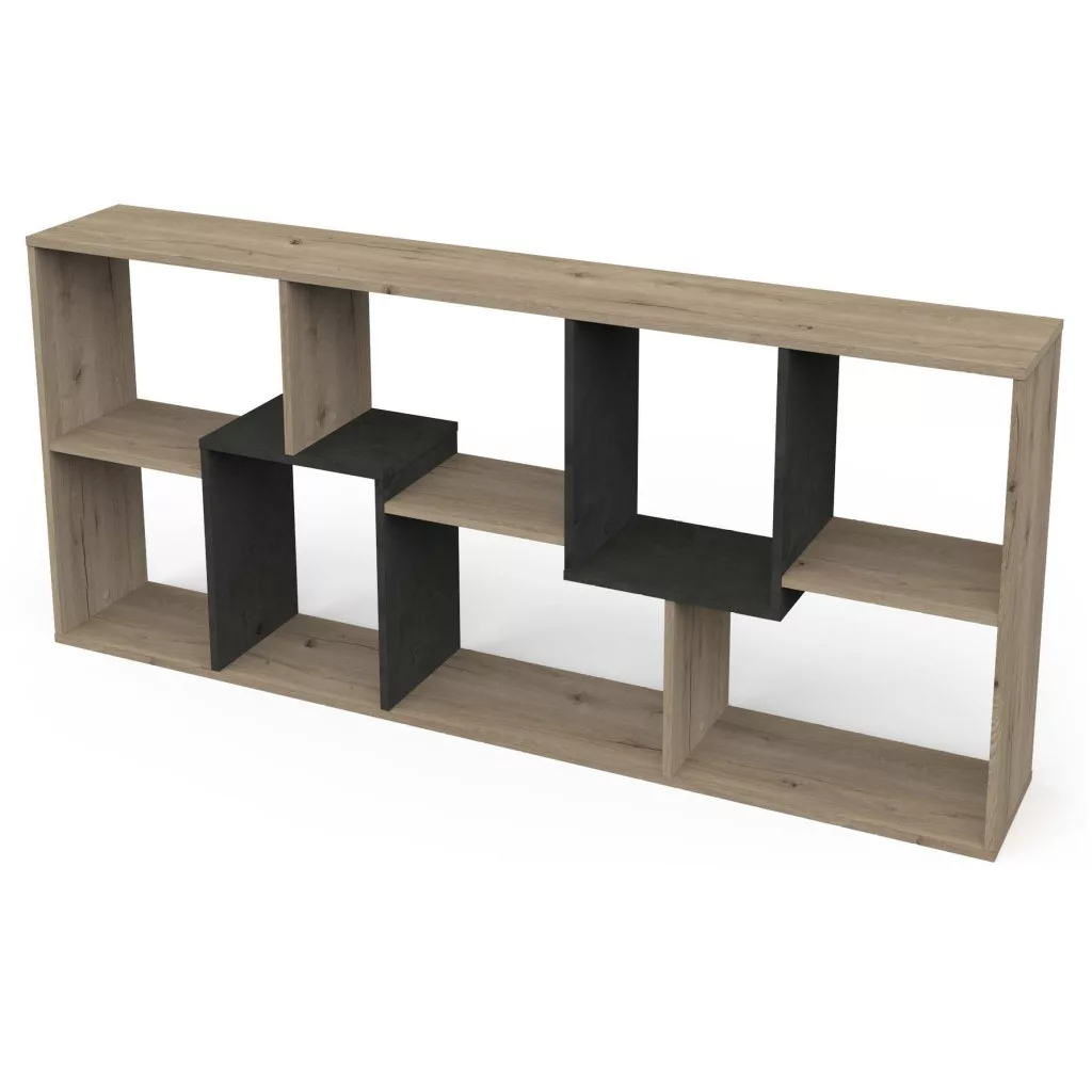 Nagy és funkcionális kocka alakú szekrény tölgyfa színben, teljes egészében Franciaországban készült. A kocka alakú szekrény úgy van kialakítva, hogy minden oldalára felállítható legyen. Ez lehetővé teszi, hogy hosszú, alacsony polcosként, vagy magas, nem sok helyet foglaló kocka alakú szekrényként is elhelyezhető legyen. Nyolc nyitott tárolóhellyel rendelkezik, és teljes egészében kiváló minőségű forgácslapból készült, melaninpapírral bevonva.