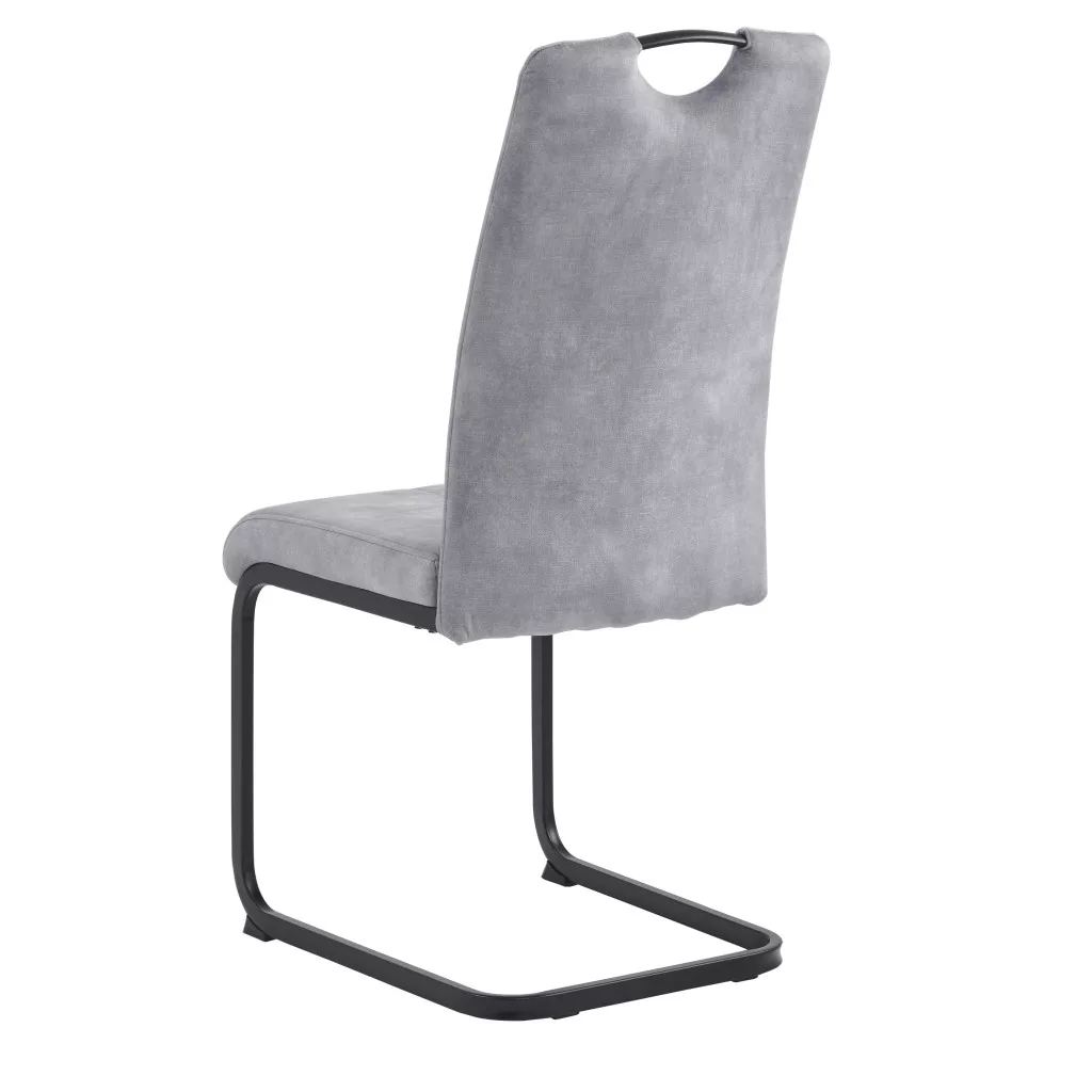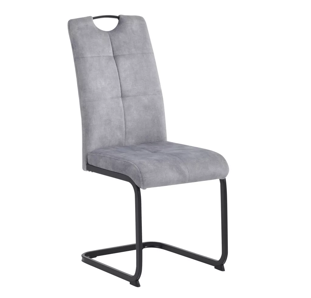 Modern étkezőszék, szánkó alakú talppal, többféle színváltozatban kapható. A szék ülőfelülete és háttámlája díszes öltésekkel van steppelve, amelyek feldobják a szék megjelenését. A háttámla tetején egy fogantyúval is rendelkezik a szék könnyű mozgatása érdekében. A szék alapja fémből készült, fekete porfestékkel bevonva a környezeti hatásokkal szembeni jobb védelem érdekében.