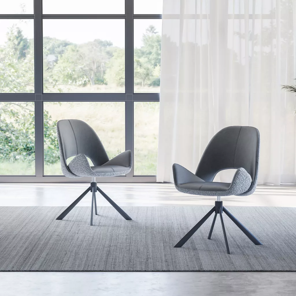 Kényelmes étkezőszék, puha, szürke színű szövettel kárpitozva. A szék háttámlája nyitott, így szabad a légáramlás. A szék ülőfelülete 49 cm magas. A szék alapja egy forgatható talppal van felszerelve, amely lehetővé teszi a szék 360°-os elforgatását. A szék ülőfelülete 51 cm mély és 45 cm széles. A karfák legmagasabb pontja 61 cm-re van a padlótól. A szék fém alapja porfestett a környezeti hatásokkal szembeni jobb védelem érdekében. Az étkezőszék maximális teherbírása 120 kg.