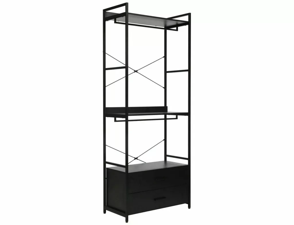 Polc/akasztó, polcok: laminált bútorlap, keret: fém, szín: fekete/matt fekete. Zárható szekrény polccal.