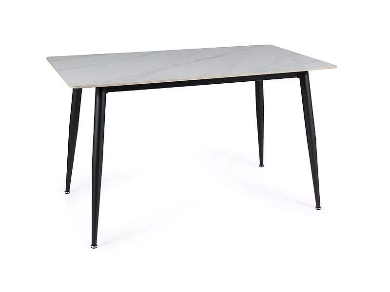 Asztallap: kerámia, márványhatású, keret: fém, szín: fehér / matt fekete.