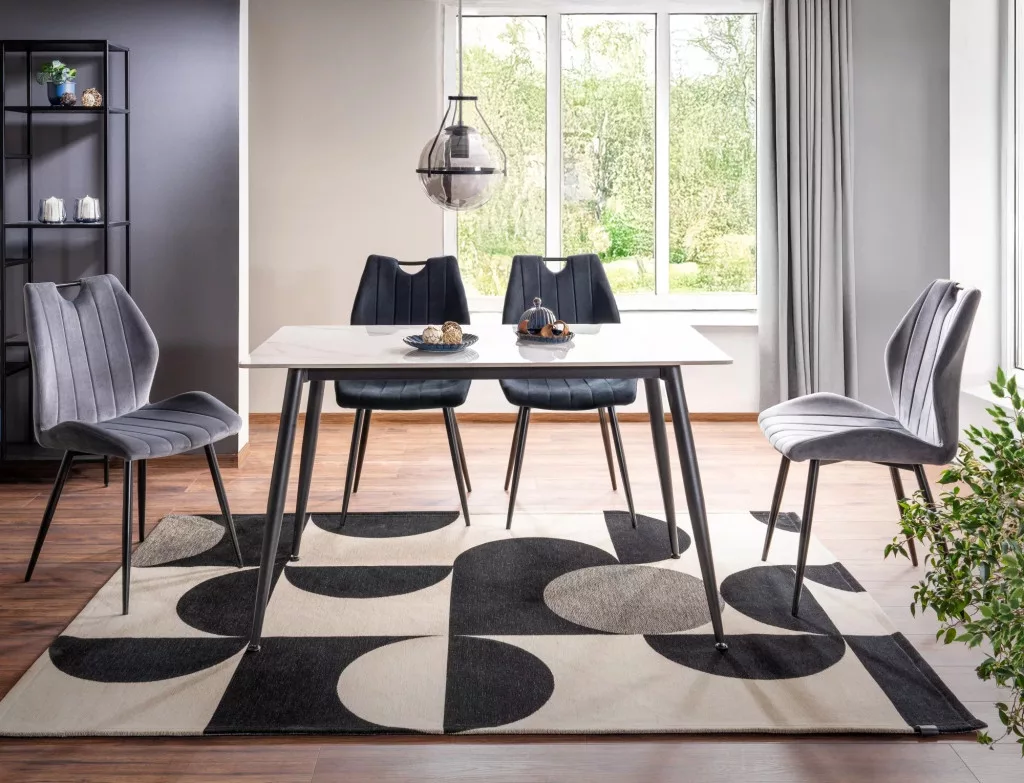 Az Rion 160 étkezőasztal, 160X90, fekete, fehér fényes (160×90 cm) praktikus választás a konyhába és étkezőbe. kerámia asztallappal és fém vázzal, fekete / fehér fényes színvilággal, így stílusos és időtálló megoldást nyújt a mindennapi használatra.